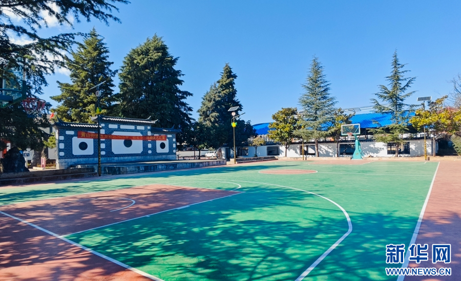 下束河村新修建的篮球场(3月20日摄)。新华网发(昆明理工大学设计研究院有限公司市政景观分院 供图)