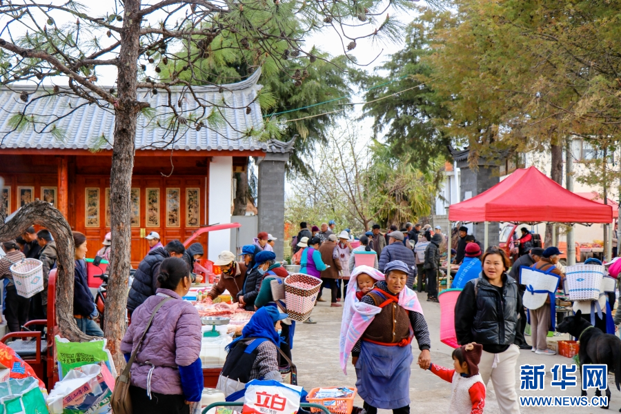 村民在丰乐村新建的集贸市场赶集(3月17日摄)。新华网发(昆明理工大学设计研究院有限公司市政景观分院 供图)