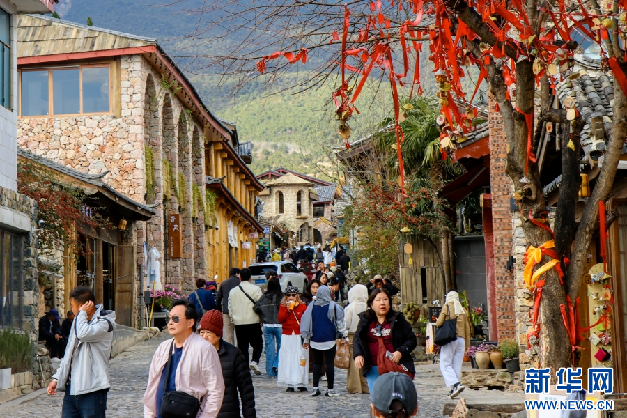 玉湖村游人如织(3月19日摄)。新华网发(昆明理工大学设计研究院有限公司市政景观分院 供图)