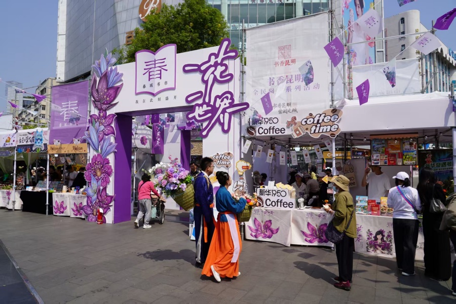 本次春城书市活动以“一花一世界,我在此刻盛开”为主题,将在五华区南屏街中心广场持续开展至5月5日。现场设置八大主题集市,将书籍与鲜花、咖啡、音乐融合,打造兼具书香氛围、城市烟火气与文化质感的沉浸式阅读消费场景,全面丰富群众精神文化生活,助力全民阅读推广。
