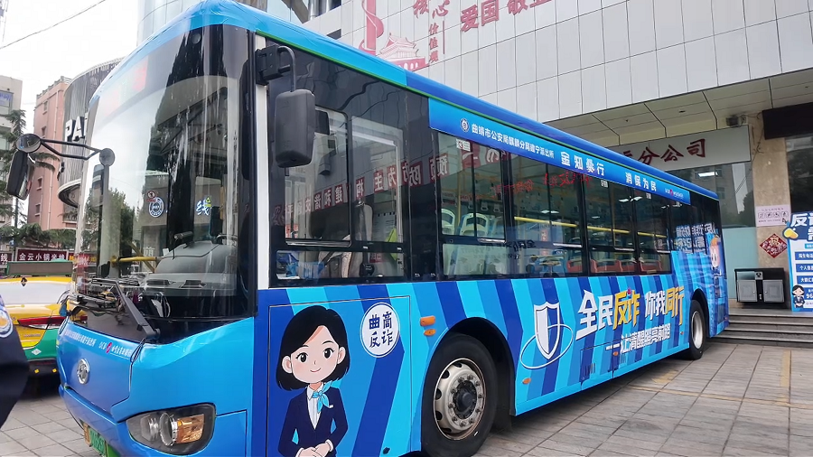4月23日,“全民反诈 你我同行”反诈巴士启动仪式在曲靖举行,标志着全市首辆“反诈专线”城际公交正式投入运营,这也是基层社会治理与公共安全宣传深度融合的一次创新实践。