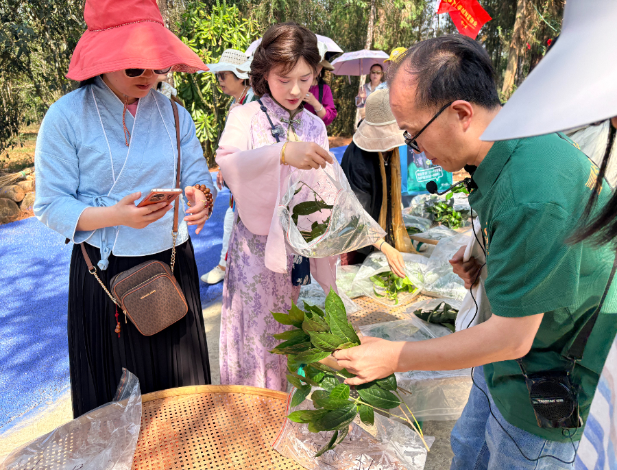 科研专家为参与活动人员讲解鉴茶知识(4月24日摄)。