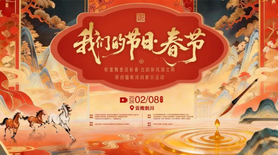 2026年2月,在中宣部、中央文明办等8家中央部委司局联合指导下,由省委宣传部(省委文明办)、云南广播电视台及州委、州政府共同承办的全国“我们的节日·春节”主题文化活动在大理州剑川县圆满落幕。活动以全国首届“楹联村晚”为核心,深挖剑川“中国楹联文化基地”资源禀赋,创新打造“传统文化+地域文脉+时代新风”传承范式,全网阅读量突破5.6亿次。