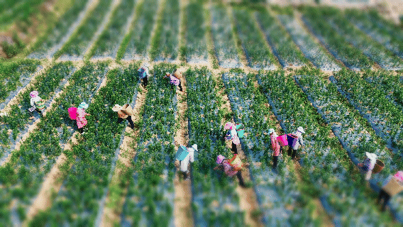 在云南省文山壮族苗族自治州广南县平山社区,300亩百合茎壮叶茂、长势喜人。时下正值百合生长管护关键期,移轴视角下,基地务工群众抢抓农时,开展掐花苞作业,通过科学疏苞养护,保障鳞茎提质增产。(韦银荧)
