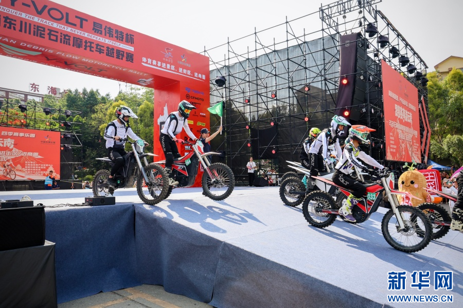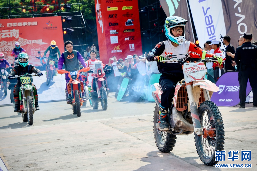 第十八届云南东川泥石流摩托车越野赛发车(4月30日摄)。新华网发(云南省体育局 供图)