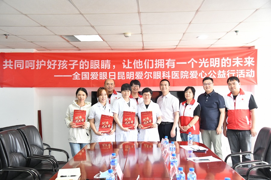 6月6日,云南省红十字人道志愿服务队为在“红十字爱眼护眼工程——乡村少年亮眼计划”云南站项目中表现突出的爱尔眼科医院集团云南省区的20名志愿者代表颁发了“红十字爱眼护眼工程优秀志愿者”荣誉证书。