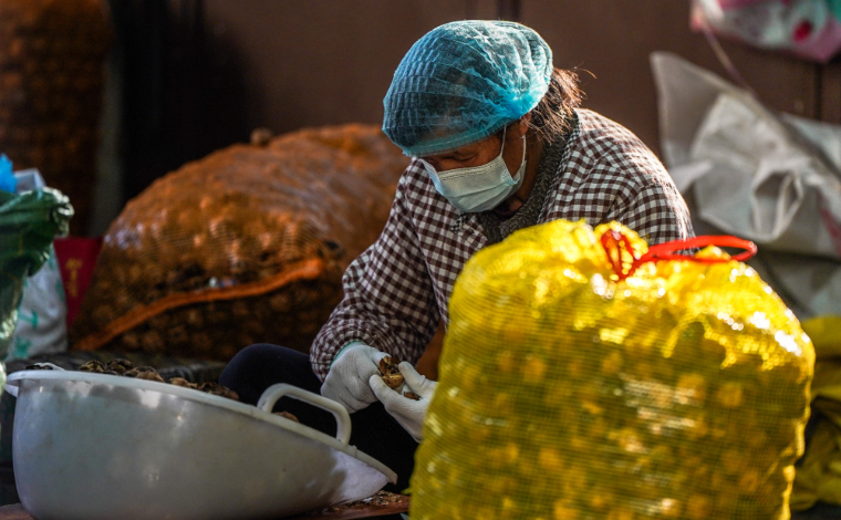 岁末时节,云南省临沧市临翔区农贸市场内腊香四溢,竹竿上挂满的腊肉、腊肠、腊排骨色泽鲜亮,吸引着置办年货的市民。市场里的家菊便利店,也借着这股腊味热潮,让小店生意愈发红火。