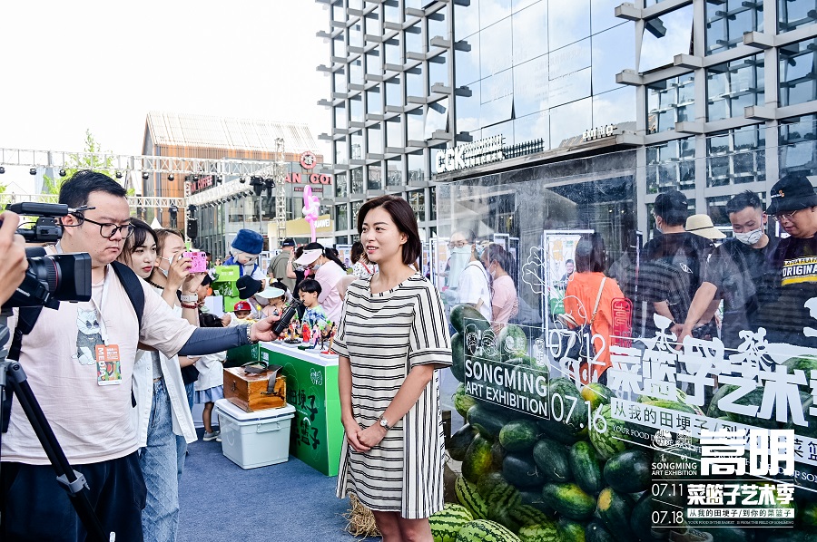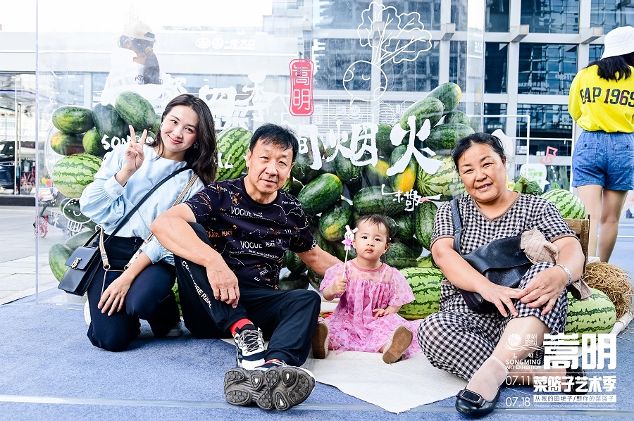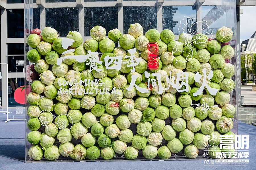 近日,嵩明菜篮子艺术展走进文艺青年云集的云南省昆明市公园1903商圈,以各式艺术装置为载体,聚焦嵩明县的“新农人”,推介嵩明县的“新农品”,掀起一场穿梭于生活场景之间的“新农潮”。