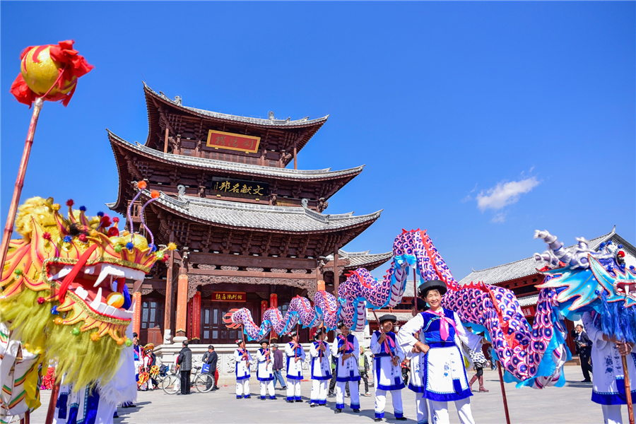 剑川古城剑阳楼前开展文化活动(资料图)。苏金泉 摄