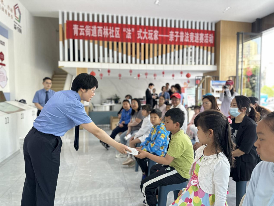 日前,围绕普法强基补短板工作,昆明市盘龙区青云街道西林社区联合昆明市盘龙区人民法院、昆明市盘龙区检察院、昆明市盘龙区彩云青年服务发展中心,以及多名党员志愿者、青年团员志愿者在昆明市青少年活动主题广场开展别具一格的“‘法’式大玩家,亲子普法竞速赛”活动。