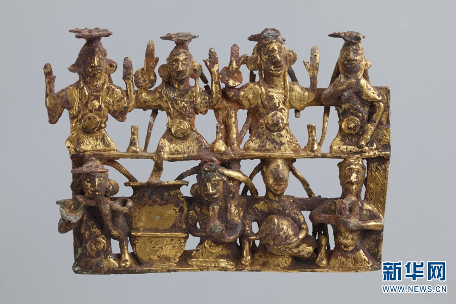 头梳银锭式发髻,耳佩圆形耳环,双腕戴镯