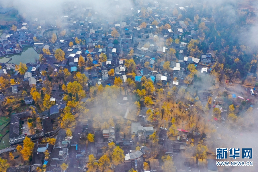 航拍腾冲银杏村(2021年12月7日摄)。新华网 赵普凡 摄