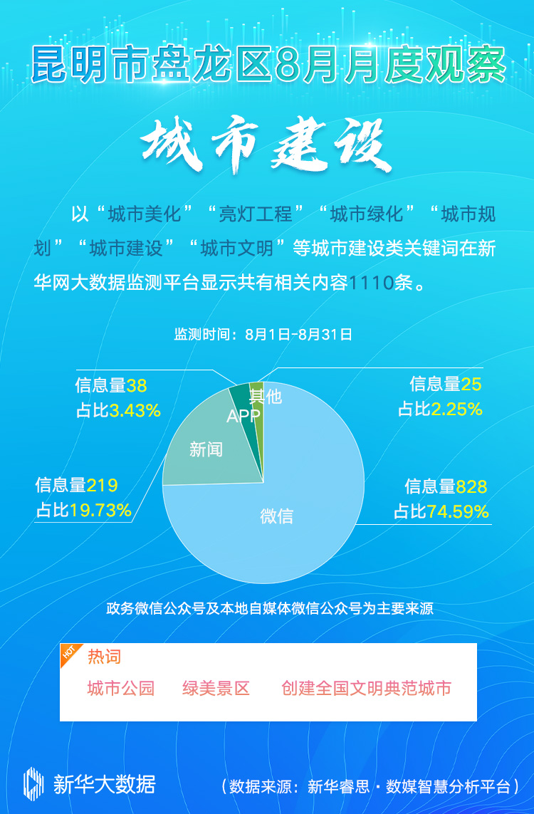 本期新华大数据解读,重点聚焦昆明市盘龙区经济发展、城市建设、生态环保、社会治理等板块的综合传播指数,反映盘龙区8月综合发展情况。