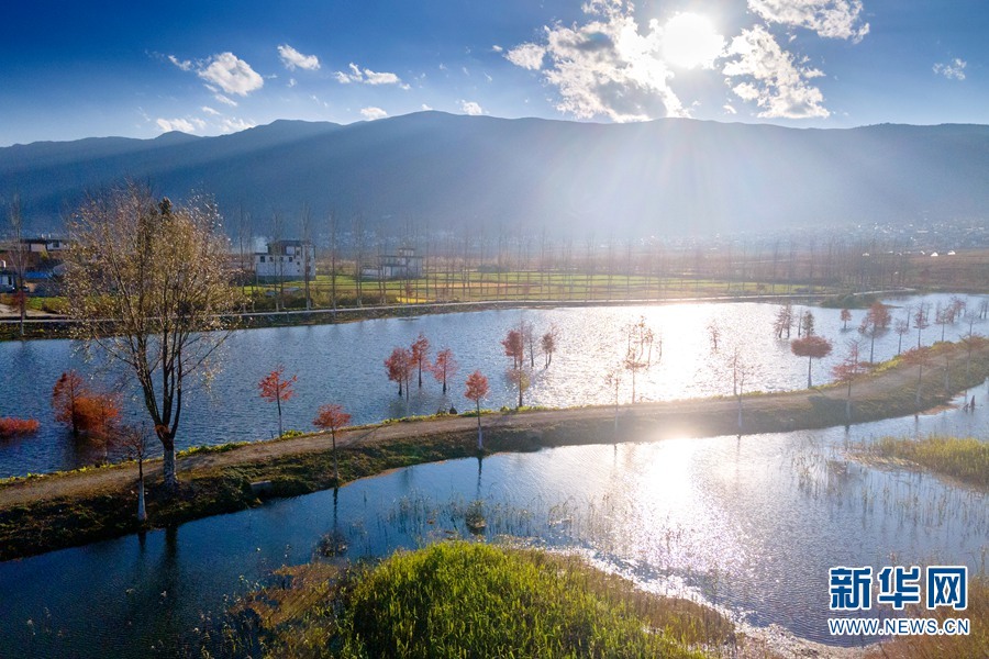 航拍视角下的大理洱源江登湿地(摄于11月28日)。新华网发(罗新才 摄)