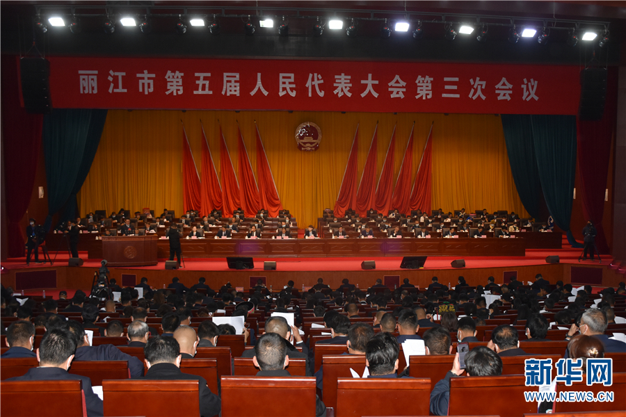 丽江市第五届人民代表大会第三次会议第一次全体会议现场(3月22日摄)。新华网 和润仙 摄