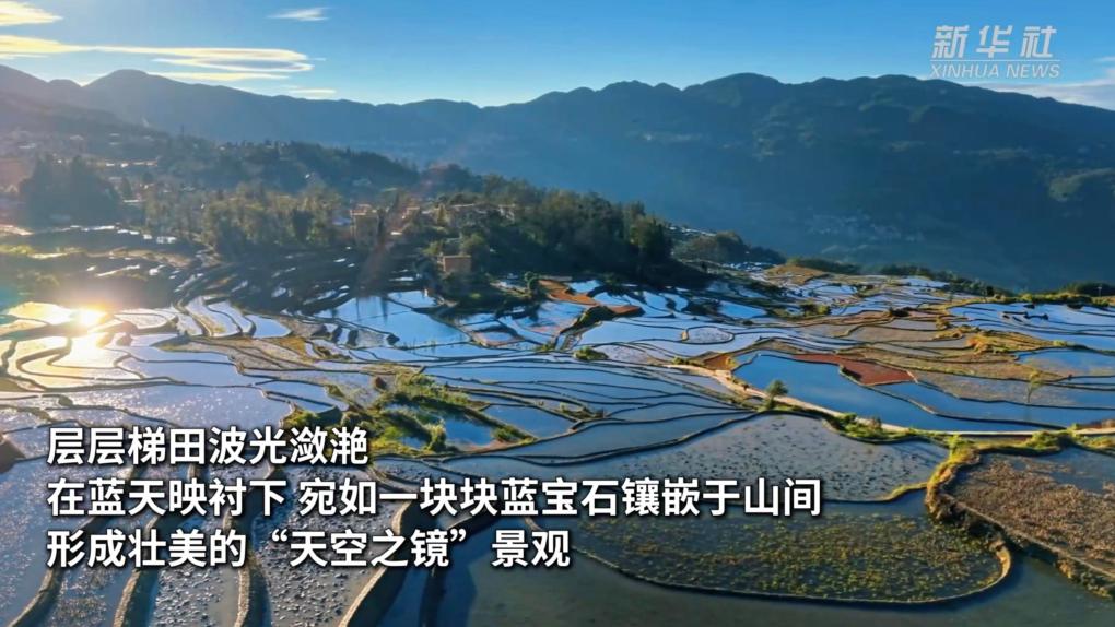 哈尼梯田水满田畴 游客尽享“天空之镜”