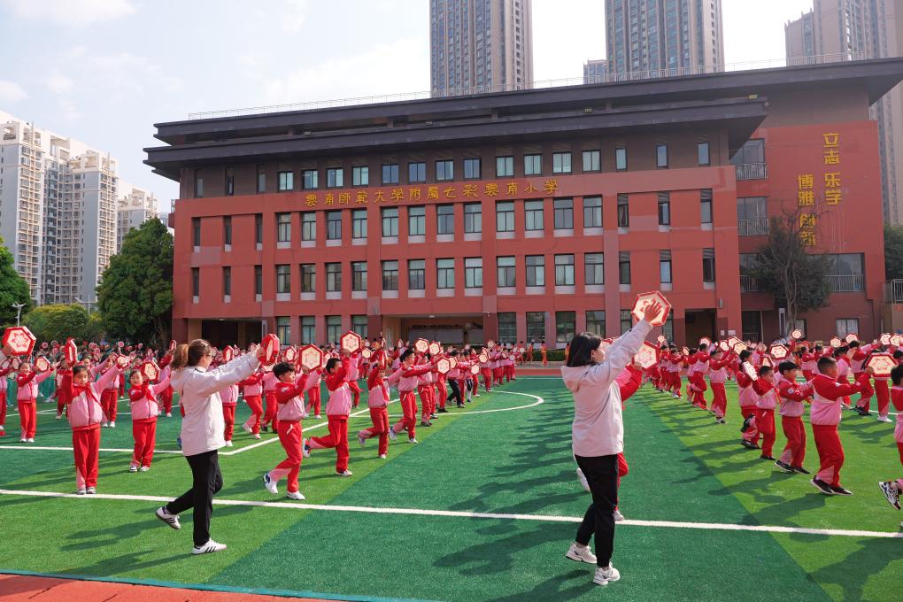 活动现场内容丰富、环节紧凑,从升国旗仪式到大课间展示,从近视防控展区参观到室内主题宣传,层层推进,全方位展现了云南近视防控工作在基层一线学校的实践与探索。