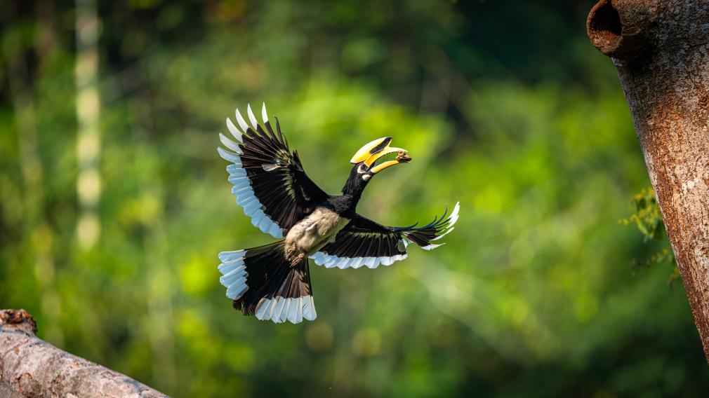 近日,在云南省德宏傣族景颇族自治州盈江县境内的“中国犀鸟谷”,自然生态摄影师记录到国家一级保护野生动物冠斑犀鸟运送泥土修缮“产房”的珍贵影像。
