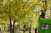 腾冲市固东镇江东村,1万余亩4万余棵古银杏树将整个村庄染成一片耀眼的金色,轻风拂过,金叶如蝶般飞舞落在房檐上、路面上。