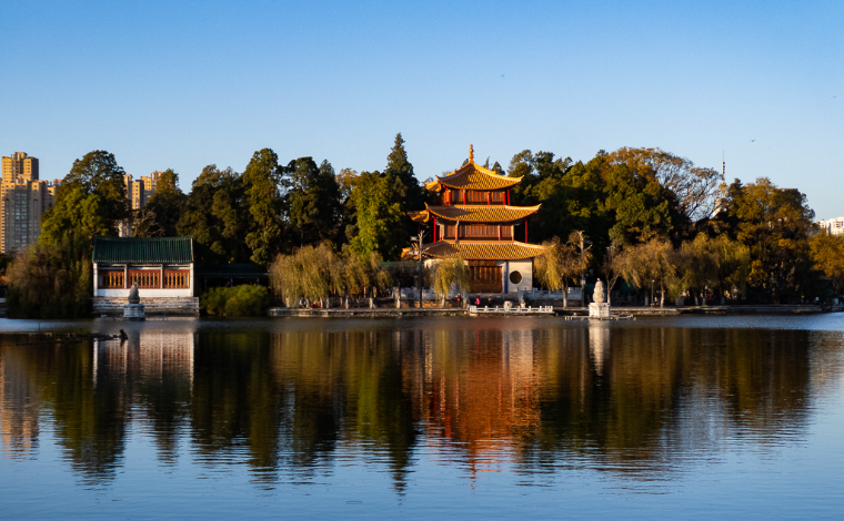 傍晚时分,落日余晖将西洱河染成了一片金黄,接引南北的兴盛桥,桥上车水马龙,桥下浮光跃金。