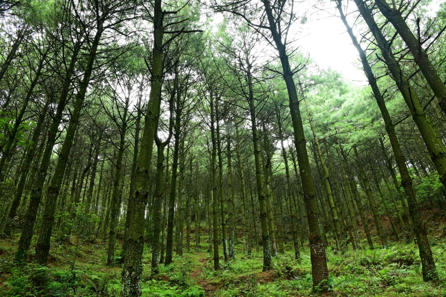 罗平县九龙街道与阿岗镇交界的万亩松林,松树高大茂密,凉爽湿润(7月22日摄)。毛虹 摄