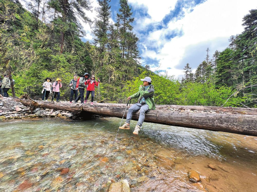 哈巴雪山茂密的森林、清澈的溪流、壮丽的雪景吸引了来自全国各地的游客。 记者 王毅 摄