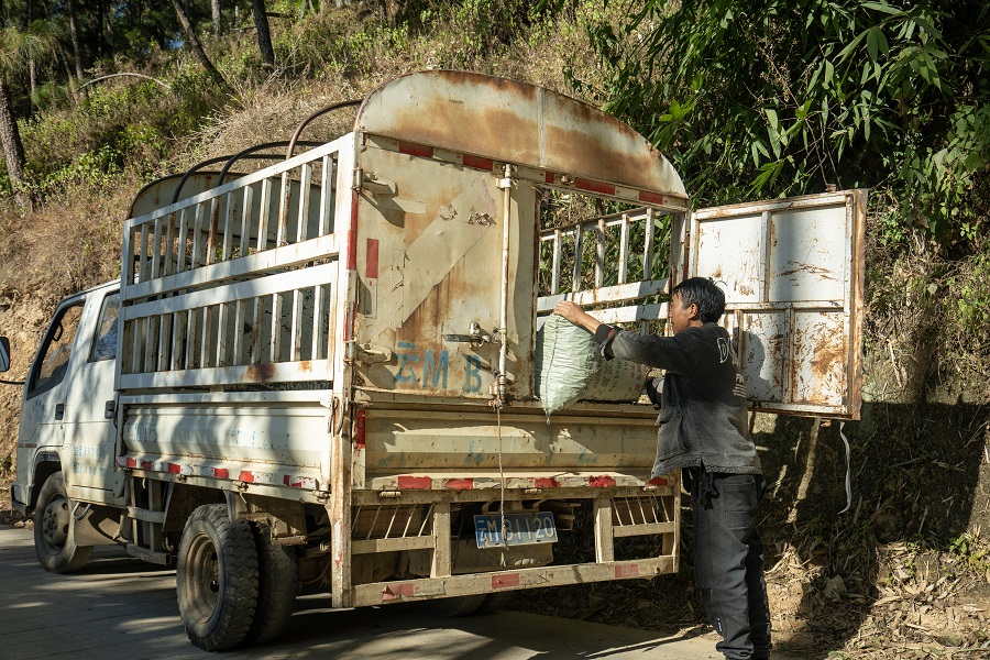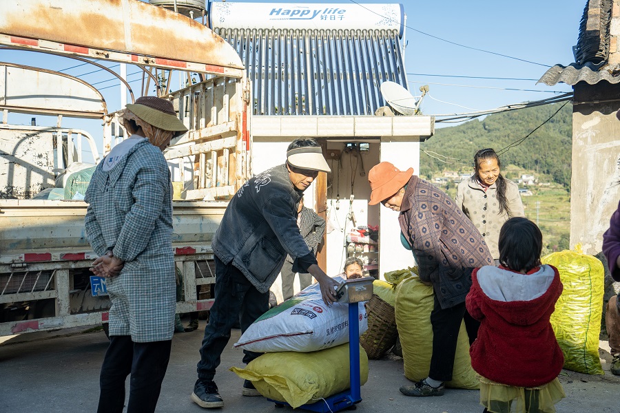 杨松良收购长寿豆(2024年12月24日摄)。杨荣辉 摄