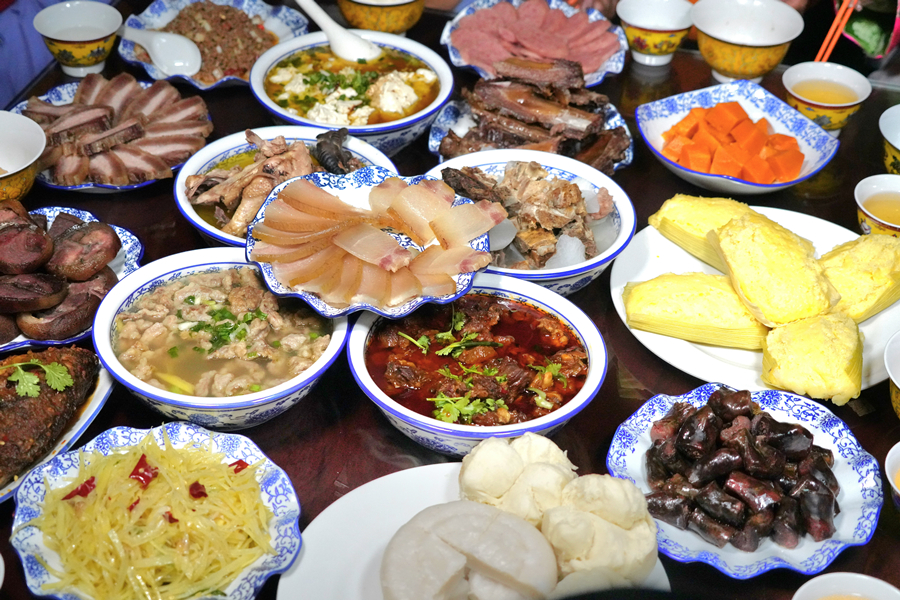 落水村的美食(1月23日摄)。