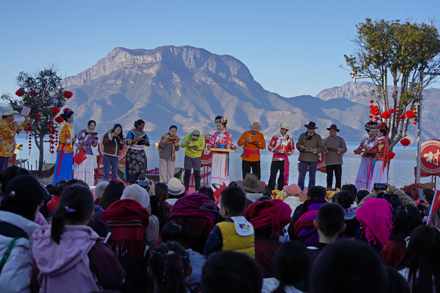 1月23日,“云”瞰“村晚”|舍不得的丽江·宁蒗泸沽湖2025年“村晚”在云南省丽江市宁蒗彝族自治县永宁镇落水村举行,本场“村晚”还通过网络直播的形式将泸沽湖畔的民族风情和湖光山色呈现给全国人民。