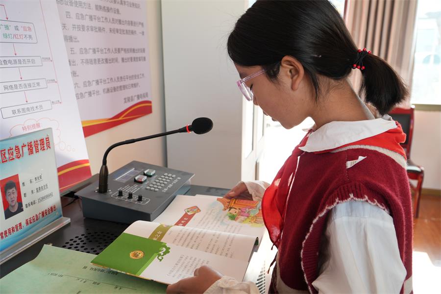 在保山市龙陵县龙新乡黄草坝村,每当夕阳西下,村里的“小喇叭”便准时响起。“大家好,我是今天的小小广播员,今天我要给大家分享的是……”小小广播员的声音透过应急广播,回荡在村庄的每一个角落。这可不是寻常的通知或广播,而是来自农家书屋的“书香之声”,小小广播员们用声音为村民们带来知识的滋养和文化的熏陶。