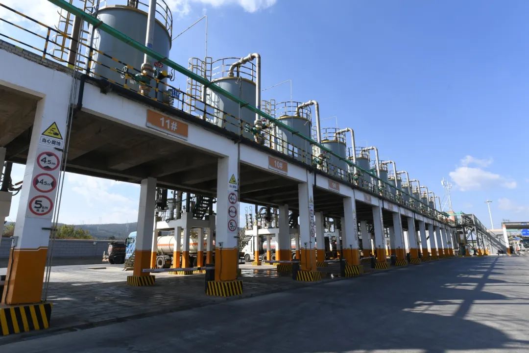 云南铜业股份有限公司西南铜业分公司工业硫酸罐装作业线。