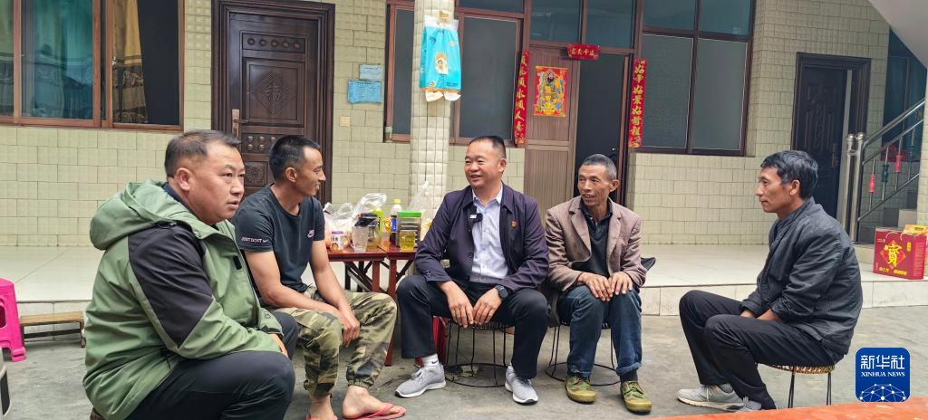 村干部挨家挨户进行宣传引导。杨永平 摄