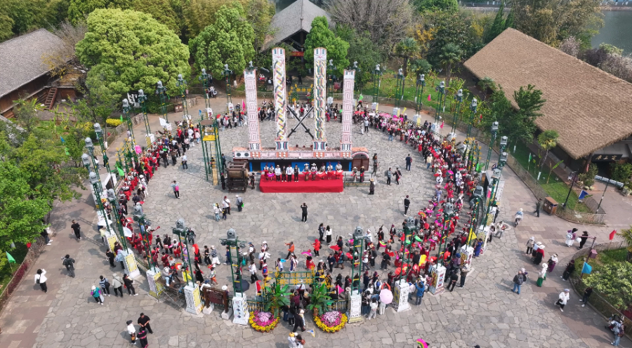 3月29日上午,“有种生活叫云南•石榴红云南民族文化大舞台•2025年昆明景颇族目瑙纵歌节”在云南民族村开幕。本次活动通过丰富多彩的民族文化活动,生动描绘了云南各民族交往交流交融的和谐画卷,展现了“石榴红”民族团结进步的丰硕成果。