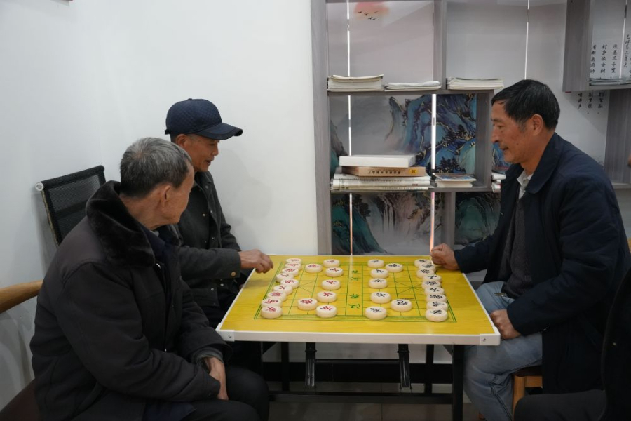 老人们在食堂二楼娱乐(2025年4月1日摄)。