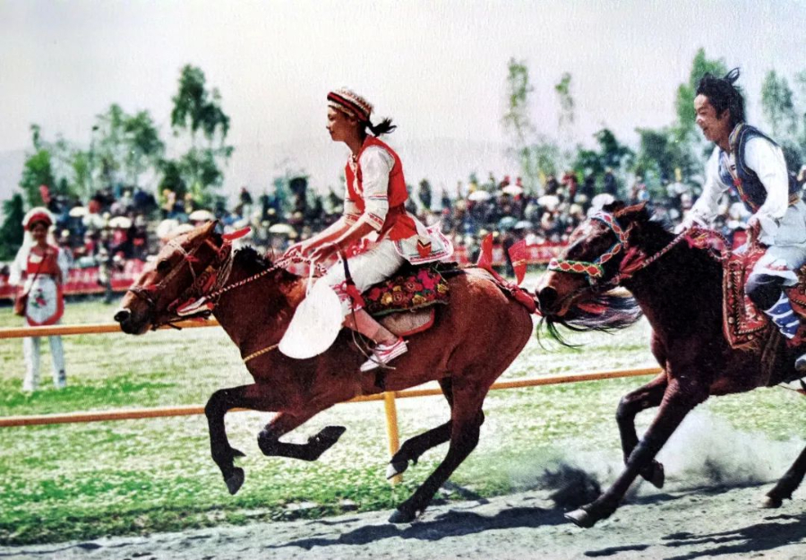 1956年“三月街”期间,大理专区举行了规模较大的体育文艺比赛大会,除了文艺体育项目外,还有赛马。