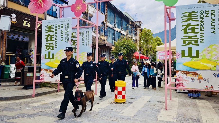 4月12日至4月14日,怒江峡谷迎来2025年贡山怒族“仙女节”,数万名游客与当地群众共赴这场文化盛宴。贡山独龙族怒族自治县公安局100余名民警辅警用脚步丈量平安,用汗水守护欢乐。