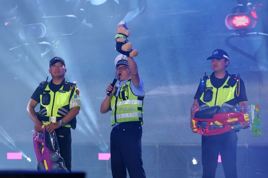 4月12日晚,芒市交管大队走上泼水节机车音乐会的舞台,为来自全国各地的“骑士”以及现场观众带去内容丰富的交通安全知识。泼水节期间,芒市交管大队路面管控和安全宣传两手抓,并做到有警必出、有难必帮,共受理群众报警求助110起,救助、帮扶群众190次,确保泼水节期间各类民俗活动顺利开展,为当地群众和游客营造了安心、放心的游玩环境。