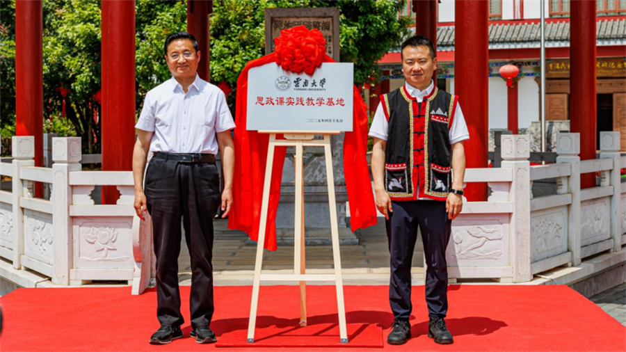 云南大学、普洱学院相关负责人共同为双方共建的“铸牢中华民族共同体意识研究基地”以及“云南大学思政课实践教学基地”揭牌。