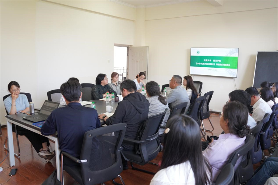 在宁洱县民族团结园的现场教学完成后,云南大学师生前往普洱学院,两校思政课教师进行了《中华民族共同体概论》课程集体备课,大家围绕“高质量讲好《中华民族共同体概论》的经验和体会”“《中华民族共同体概论》课程实践教学的有效途径”“《中华民族共同体概论》建设为‘金课’的思路和举措”等主题进行交流研讨。