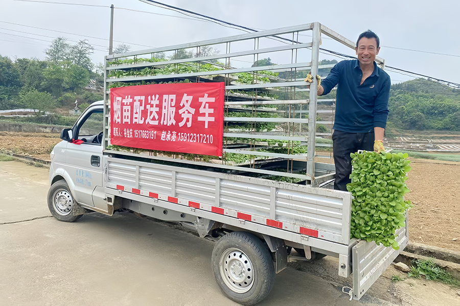 更让烟农点赞的是“送苗到田”服务。“以前要自己开车去拉苗,现在电话预约,育苗车直接开到地头,省时又省力!”马鞍山村委会的烟农杨志友说,为保障移栽黄金期用苗需求,合作社组建了“送苗突击队”,根据移栽进度动态调度车辆,确保烟苗从出棚到入土不超过24小时。