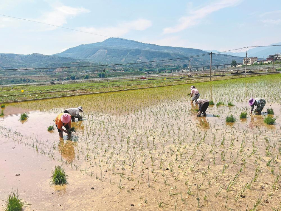 华坪县荣将镇哲理村群众忙插秧。