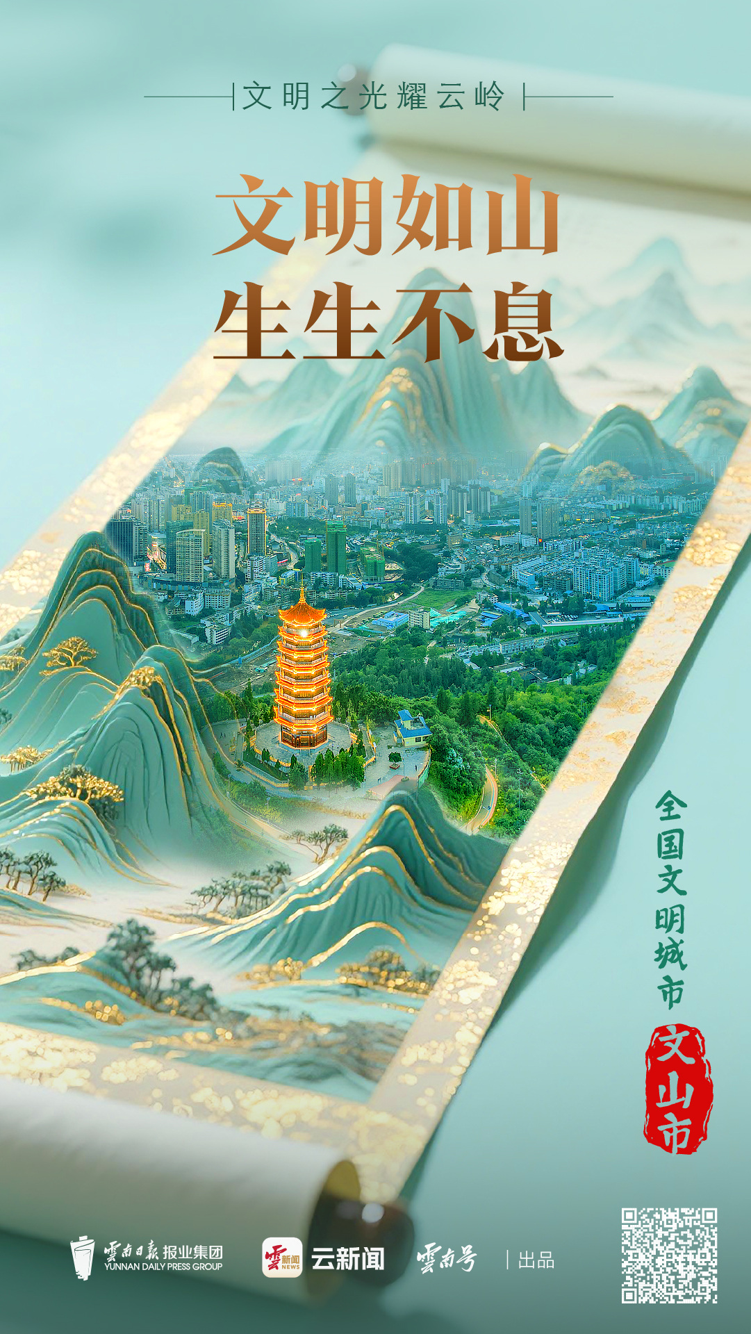 寓意“文明如山川般生生不息,稳固恒久”