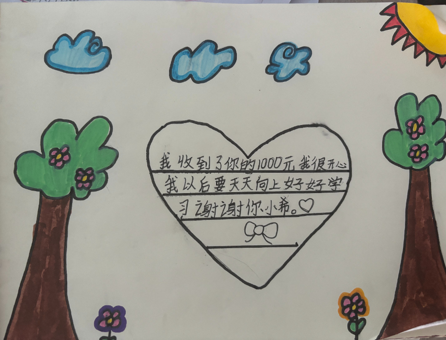 收到助学金的同时,这些留守儿童还收到了中国青基会的《来自希望工程的一封信》。在信中,作为希望工程“小小使者”的小希以小朋友的口吻和大家分享了她的故事,她希望大家能成为好朋友,一起好好学习、快乐成长。“我衷心希望,我们都能像小树苗一样茁壮成长,我们的生活会变得越来越好,我们的国家也会变得越来越强。”