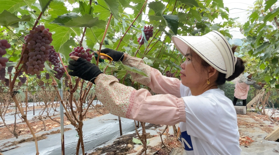 葡萄种植需要大量劳动力,为村民提供了家门口就业的机会。任招娣表示,每年人工支出超90万元,高峰期每天用工50多人,日薪100元。村民郑大姐满意地说:“既能照顾家庭,又能赚钱,生活更有盼头。”“租金+薪金”模式让村民腰包越来越鼓。