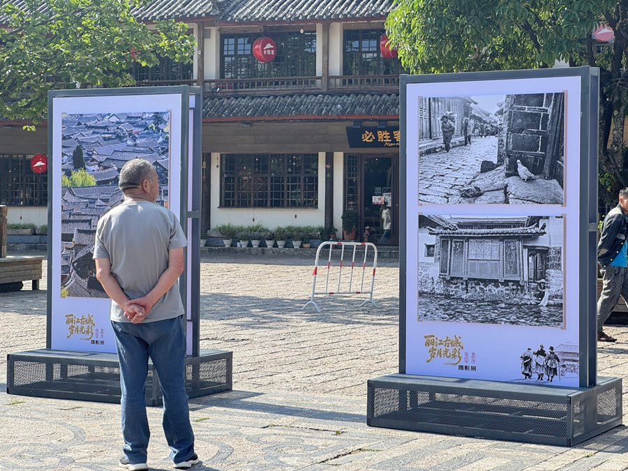 市民在“丽江古城·岁月光彩”摄影展观展(6月14日摄)。
