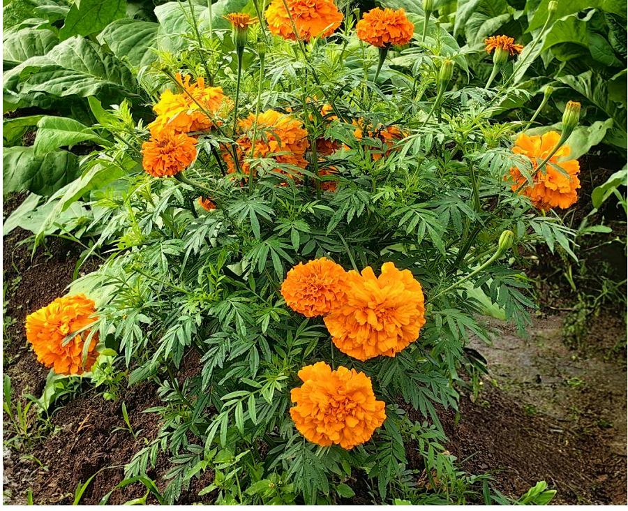 此外,永德县德党镇等烟区通过在烟田地埂种植万寿菊,打造出金色生物隔离带。这条隔离带具有双重防护作用,万寿菊根系分泌物能有效驱避抑制根结线虫、金龟子幼虫等土传害虫,万寿菊散发的特殊气味干扰蚜虫、粉虱等迁飞害虫的嗅觉,形成了一道无形的“气味隔离带”。