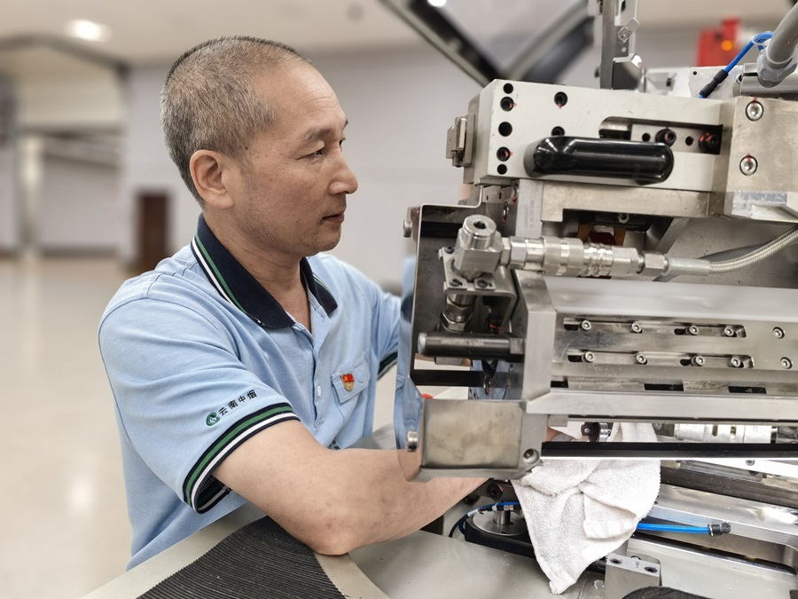 近日,云南中烟红云红河集团红河卷烟厂卷包车间ZB28包装机操作屏突然报警,几个操作工低声讨论。人群中,戴着老花镜的操作工薛忠格外沉静,正逐项核对笔记。