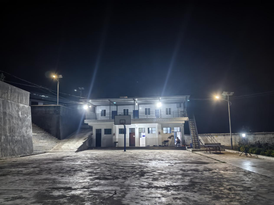云南农业职业技术学院为龚家寨小学安装的篮球场照明灯和太阳能路灯(资料图)