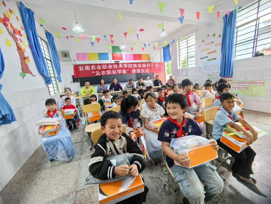 云南农业职业技术学院龚家寨村小学“云农职奖学金”颁奖仪式(资料图)