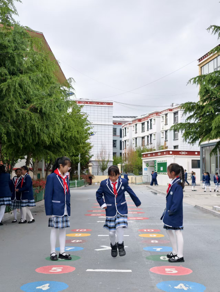 帮扶团成员为香格里拉的学校绘制地面游戏(资料图)。